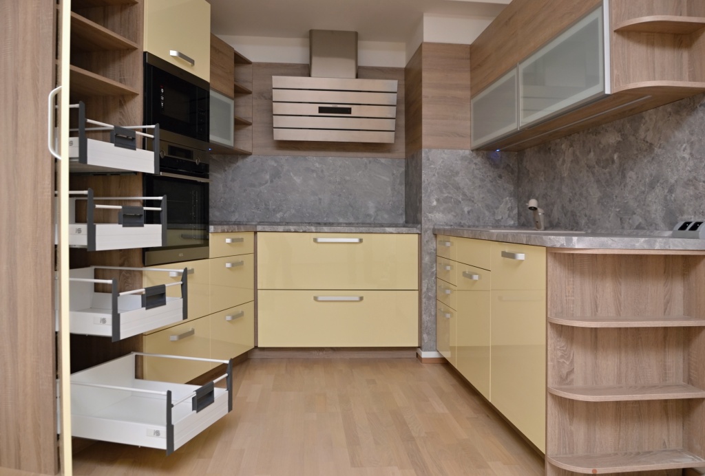 Kuchyně na zakázku vanilka lesk Praha 7 potravinové zásuvky.jpg