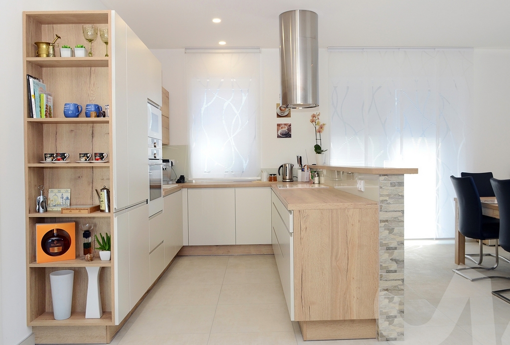 Bílá kuchyně na míru je stále v kurzu a nejlépe v kombinaci se dekorem dřeva. Ideální je pak teplý odstín dubu nebo buku. Nejtěžší rozhodnutí pak bude na Vás! Lesklou nabo matnou kuchyni na míru?
